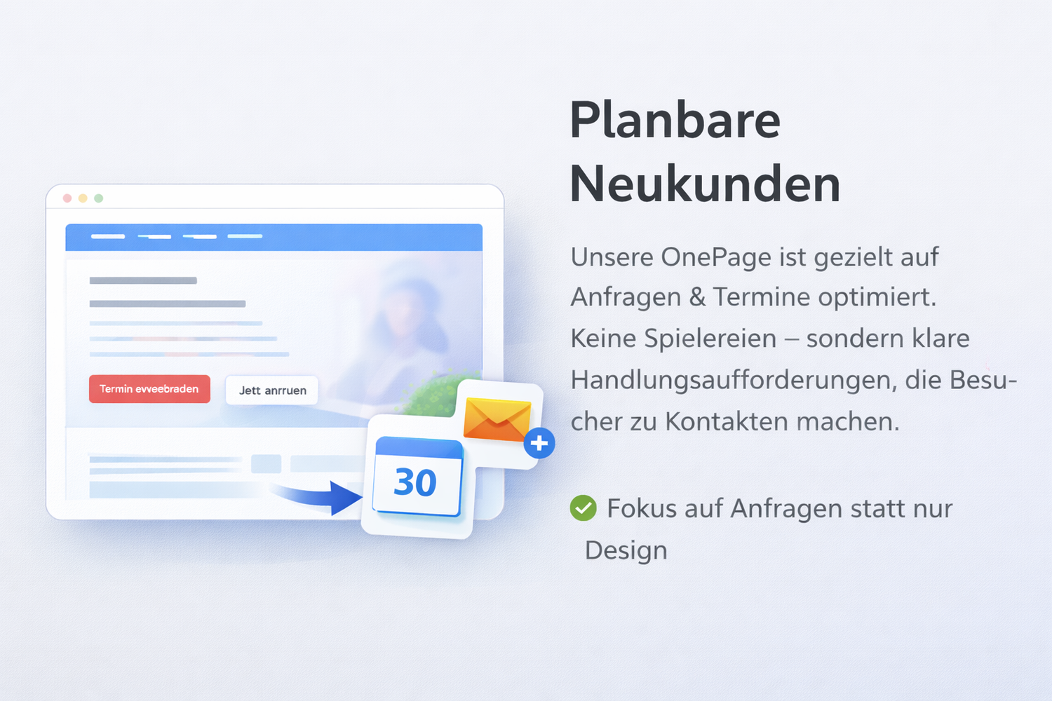 Unsere OnePage ist gezielt auf Anfragen & Termine optimiert.