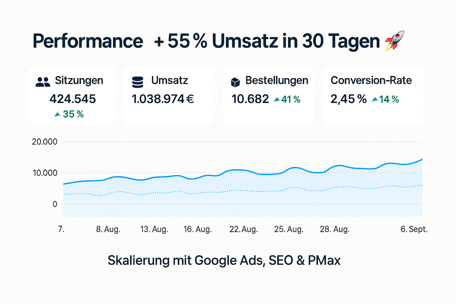 Nach nur 6 Monaten Google Ads & Performance Marketing Betreuung war er 7-stellig – und wächst weiter.